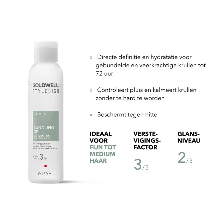Goldwell StyleSign Curls Bundling Gel is een hydraterende krulgel die futloze krullen accentueert en hydrateert. Deze gel is speciaal ontwikkeld om verschillende krultypes te beheersen en mooie krullen te creëren in zowel steil, krullend als golvend haar. Verrijkt met een vochtinbrengende formule helpt het om de krullen te hydrateren en het vochtbalans op peil te houden. Ideaal voor het creëren van de perfecte, gedefinieerde krul.