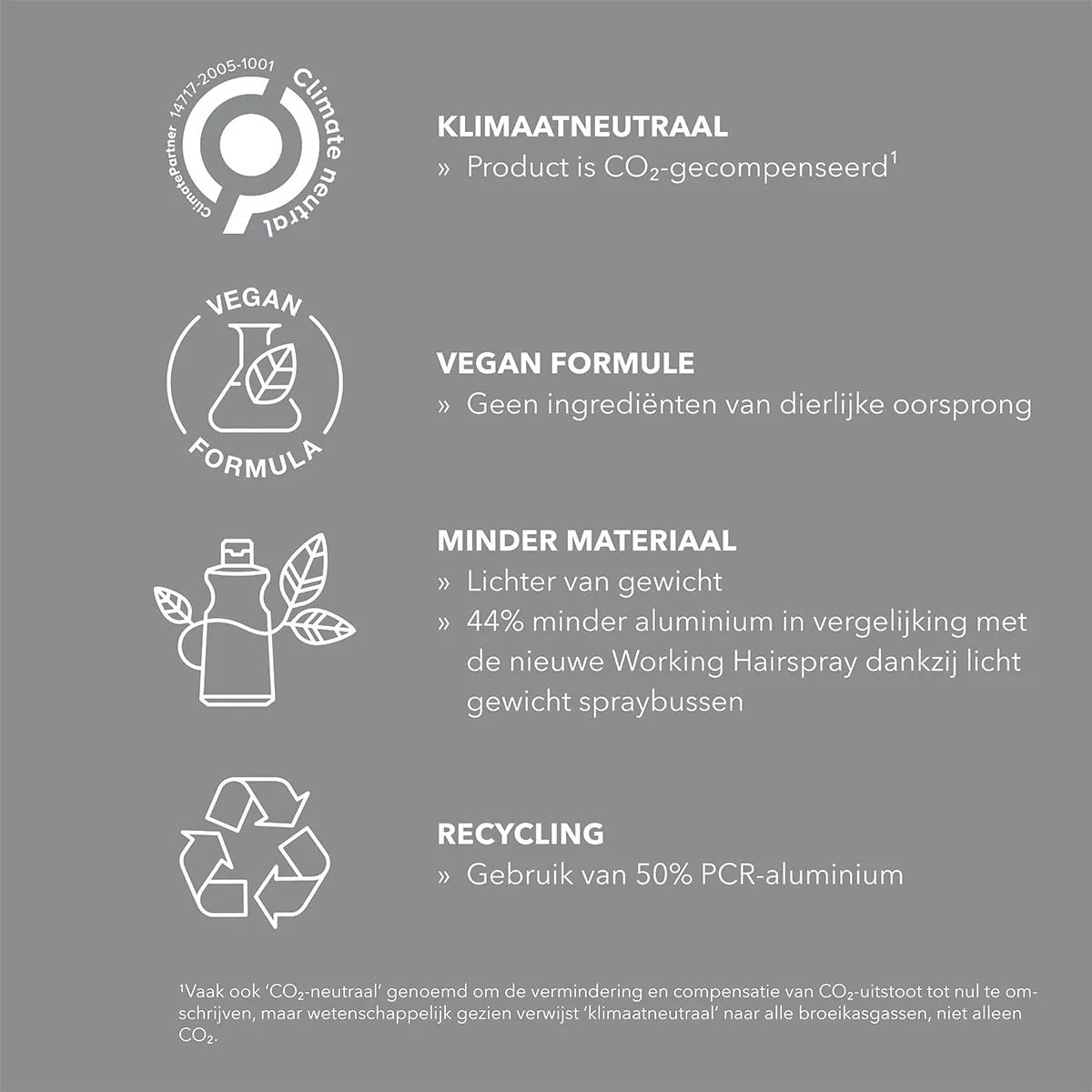 De Goldwell Compressed Working Hairspray biedt alles wat je zoekt in een werkbare haarspray: flexibele fixatie, natuurlijke beweging en een ultrafijne nevel die je kapsel niet verzwaart. Dankzij de geavanceerde compressed technologie staat deze 150ml gelijk aan de gebruiksduur van een traditionele 300ml spray – in een compact formaat dat perfect is voor onderweg of in je stylingkit.