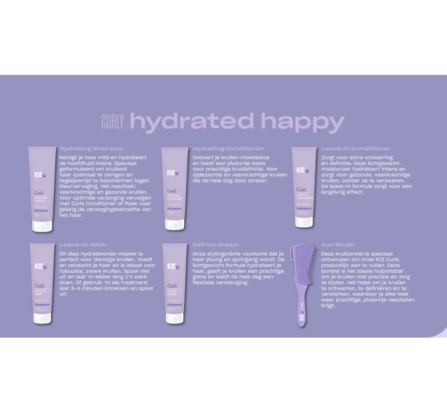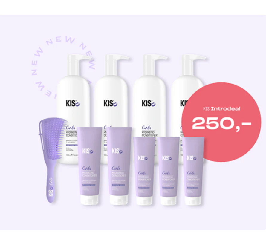Dit mooie startpakket van KIS Curls voor in uw kapsalon bestaat uit: 4 grote literflessen van elke soort 1 en van de verkoopverpakkingen zitten er 4 van elke soort in. Verder zitten er 10 Curls borstels bij dit pakket en een display voor op de toonbank in de salon om de verkoopproducten in te etaleren.