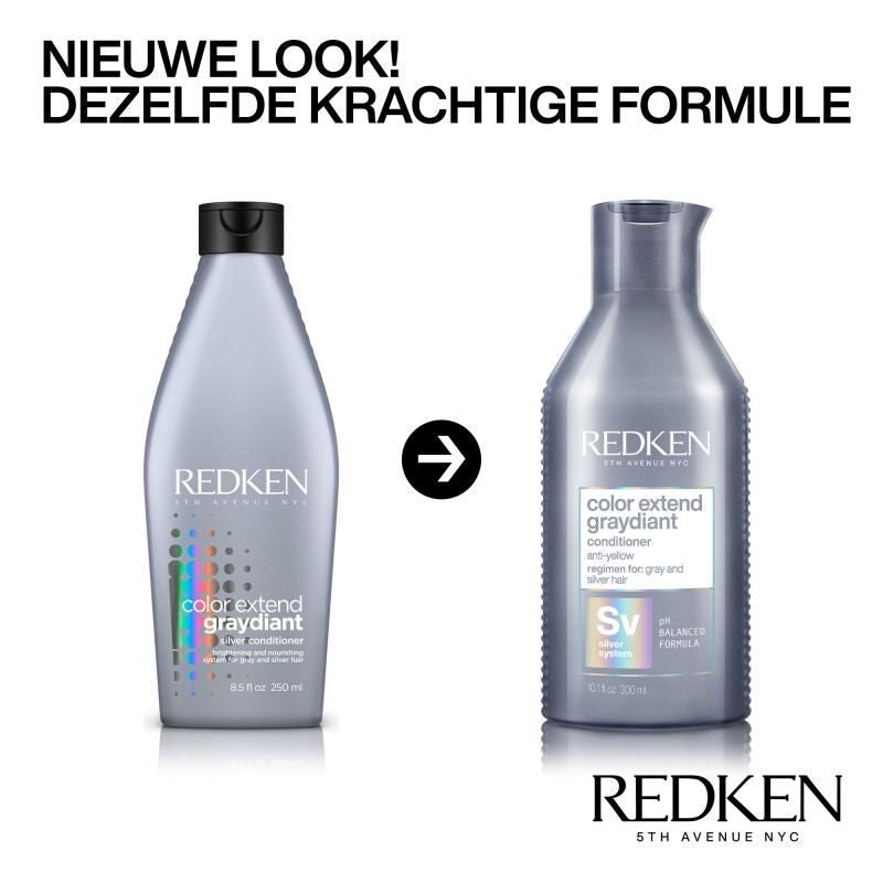 Redken Color Extend (CE) Graydiant Conditioner is een hydraterende, kleurcorrigerende conditioner die speciaal is ontwikkeld voor zilvergrijs en grijs haar. Deze conditioner neutraliseert en vermindert gele en oranje ondertonen, waardoor de basistoon van het haar wordt geëgaliseerd. Het haar wordt intens gevoed en versterkt, waardoor het beter handelbaar wordt en een prachtige glans krijgt. Met Redken Color Extend Graydiant Conditioner wordt je zilvergrijze of grijze haar tot wel 2x sterker dan voorheen, waardoor het een verzorgde en gezonde haartextuur krijgt. Het zilvergrijze en grijze haar ziet er hierdoor stralend en gezond uit!