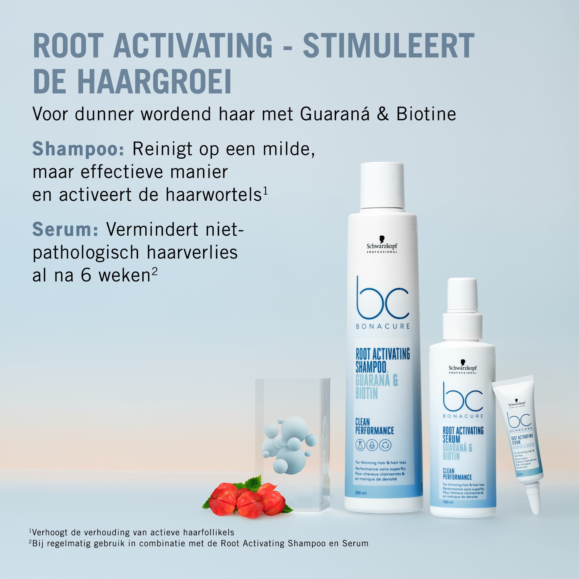Het Schwarzkopf Bonacure Root Activating Serum 8x7ml is ontworpen om pathologisch haarverlies te verminderen door de haarwortels te activeren en de hoofdhuid te stimuleren. Deze unieke formule, snel absorberend en vrij van, met het Superfood Complex, verrijkt met Guaraná en Biotine, bevordert voller uitziend haar en verbetert de kwaliteit en vitaliteit. Het serum brengt de hoofdhuid opnieuw in balans en waarborgt de toekomstige conditie van het haar. Geschikt voor dagelijks gebruik.
