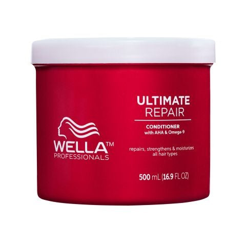Wella Professionals Ultimate Repair Conditioner is een diep voedende conditioner die beschadigd haar zichtbaar herstelt en versterkt. Geformuleerd met Alpha Hydroxy Acid (AHA) en Omega-9, biedt deze conditioner langdurige hydratatie die tot wel 4 wasbeurten* meegaat. Het vormt de essentiële tweede stap in de Ultimate Repair verzorgingsroutine en bereidt het haar voor op verdere herstelbehandelingen. De romige textuur van de conditioner verzwaart het haar niet en laat het zijdezacht, schoon en fris aanvoelen.
